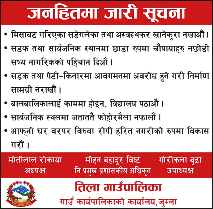 जुम्ला दर्पण । १८ जेष्ठ २०८२, शनिबार ०८:०९