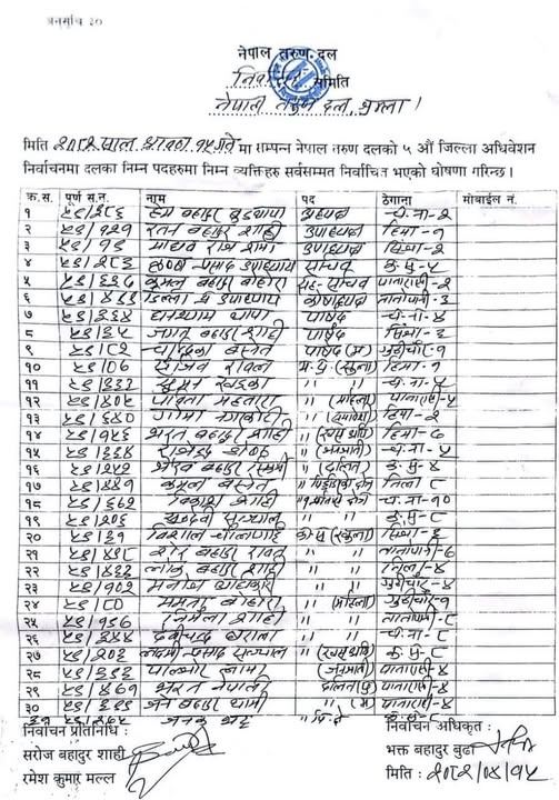 हेम बुढ्थापाको अध्यक्षमा नेपाल तरुण दल जुम्लाको ३० सदस्यीय नयाँ जिल्ला कार्य समिति चयन गरिएको हो । जसको उपाध्यक्षहरुमा रतनबहादुर शाही र माधव राज शर्मा चयन भएका छन् ।